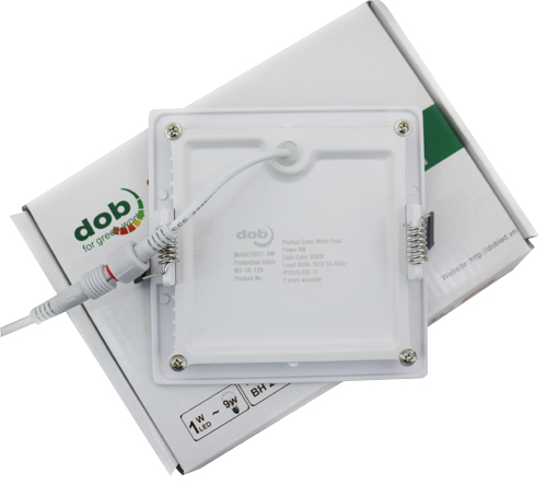 Đèn LED âm trần mặt vuông siêu mỏng 8W - DOB- DBS1-8 là sản phẩm mang thương hiệu DOB, có công suất 5W, kích thước khoét lỗ là 105x105mm, kích thước mặt 120x120mm và chiều dày 30mm.Đèn LED downlight DBS1-8 có ánh sáng tỏa đều, với góc chiếu rộng sẽ tạo cho không gian có ánh sáng đồng đều. Thiết kế mặt vuông với đường nét hiện đại sẽ giúp cho không gian hiện đại và sang trọng hơn.