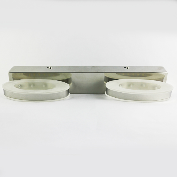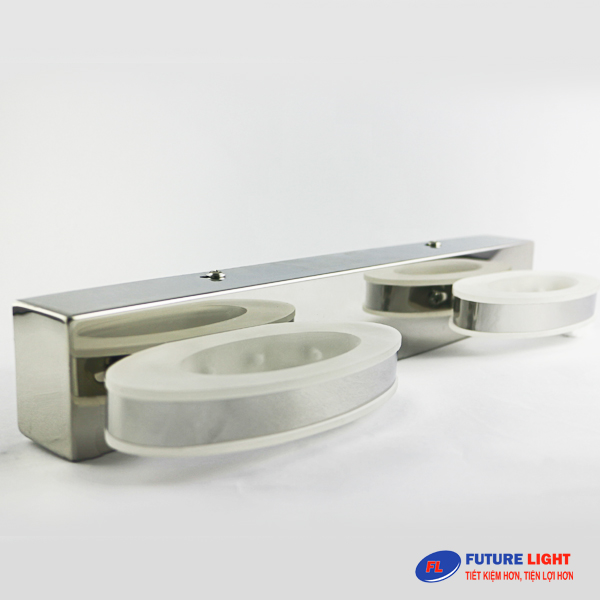 - Thân đèn hợp kim mạ inox không gỉ đỡ 2 chao mica hình elip, mỗi chao đèn mang chip LED công suất 4W