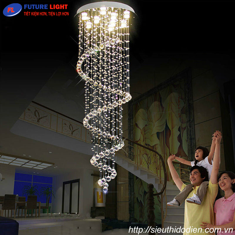 - Vật liệu chế tạo: Mâm inox đường kính D550 mm, các hạt pha lê class A K9 Crystal thả trên dây cáp lụa chống gỉ sét